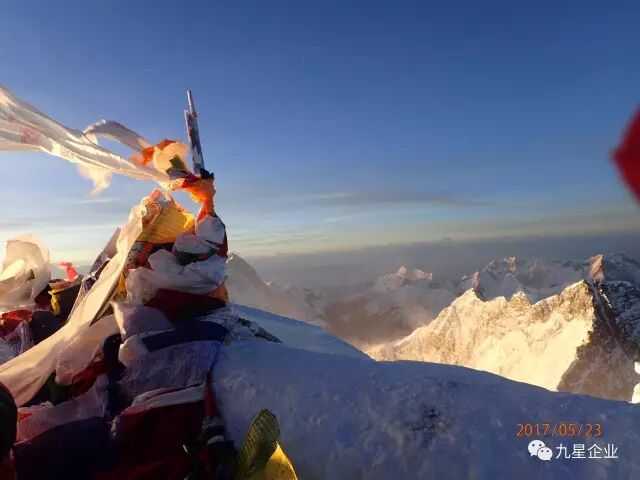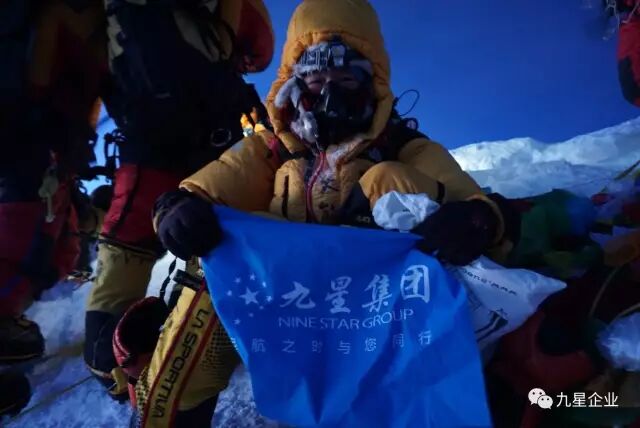 2017年5月23号18点15分,熊敏成功登顶世界之巅珠穆朗玛峰,在8848米高峰扬起九星旗帜!