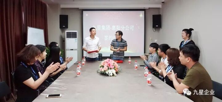 距惠州分公司成立已过去半年,在惠州分公司稳扎稳打的局面上,九星企业和惠阳分公司的签约,意味着惠州市场将全面打开,这是九星集团在其发展历史进程中浓墨重彩的一笔!